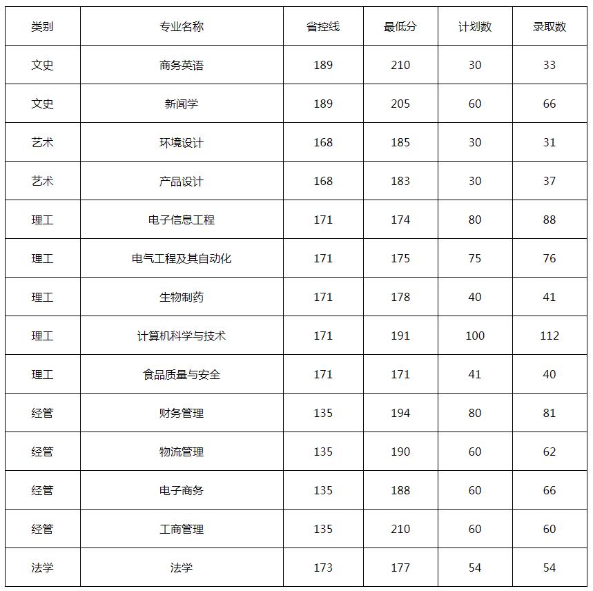 5月21日,我校2019年“专升本”招生录取顺利完成,一次性完成全部招生计划。今年计划招生800人,实际录取847人,比去年增加147人。经管类最低分超过省控线53分;文史类录取最低分超过省控线22分;艺术类超过15分;法学类超过4分;理工类最低分与省控线持平。各专业录取分数线见下表,考生5月22日可通过专升本综合信息管理系统查询录取结果。