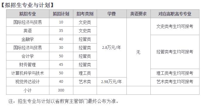 2020年温州商学院专升本招生专业与计划