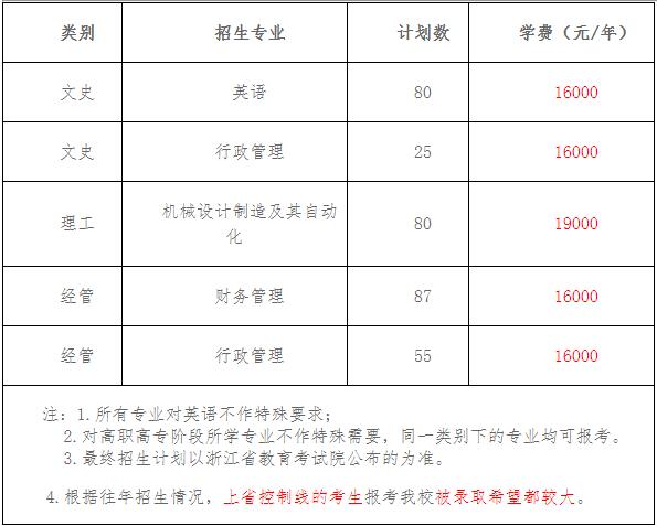 浙江海洋大学东海科学技术学院2020年专升本招生计划